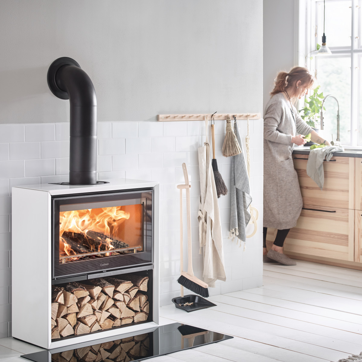 Contura 310 er det perfekte valget for deg som ønsker å bestemme selv hvordan peisovnen skal se ut. Vil du ha en svart eller hvit? Kleberstein eller artstone? Glassdør eller støpejernsdør? Her er det mange valgmuligheter. Peisovnen tar opptil 50 cm lange vedkubber. Ovnen kan også utstyres med kokeplate, vedrom og utrekksskuff. Mulighet for tilkopling til uteluft.
