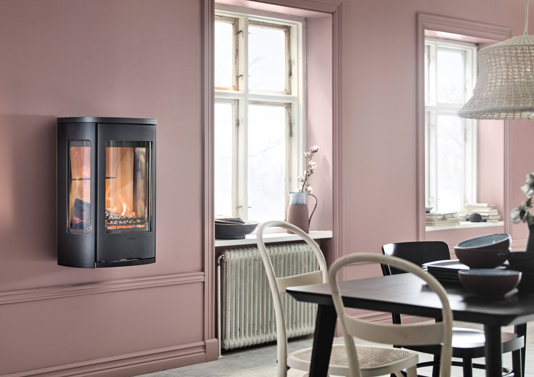 Vår vegghengte modell er både praktisk og hever ilden slik at den synes bedre. De store sideglassene gir god ildsynlighet fra alle kanter. 856W fås i flere varianter, slik at du skal kunne finne den som matcher veggen din best.