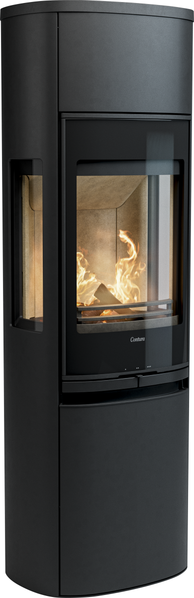 Nye Contura 900 fått enda større glassflater enn tidligere modeller. Den brede døren og de generøse sideglassene gir deg et maksimalt innsyn til flammene – og skaper et varmt og stemningsfullt midtpunkt i stua.