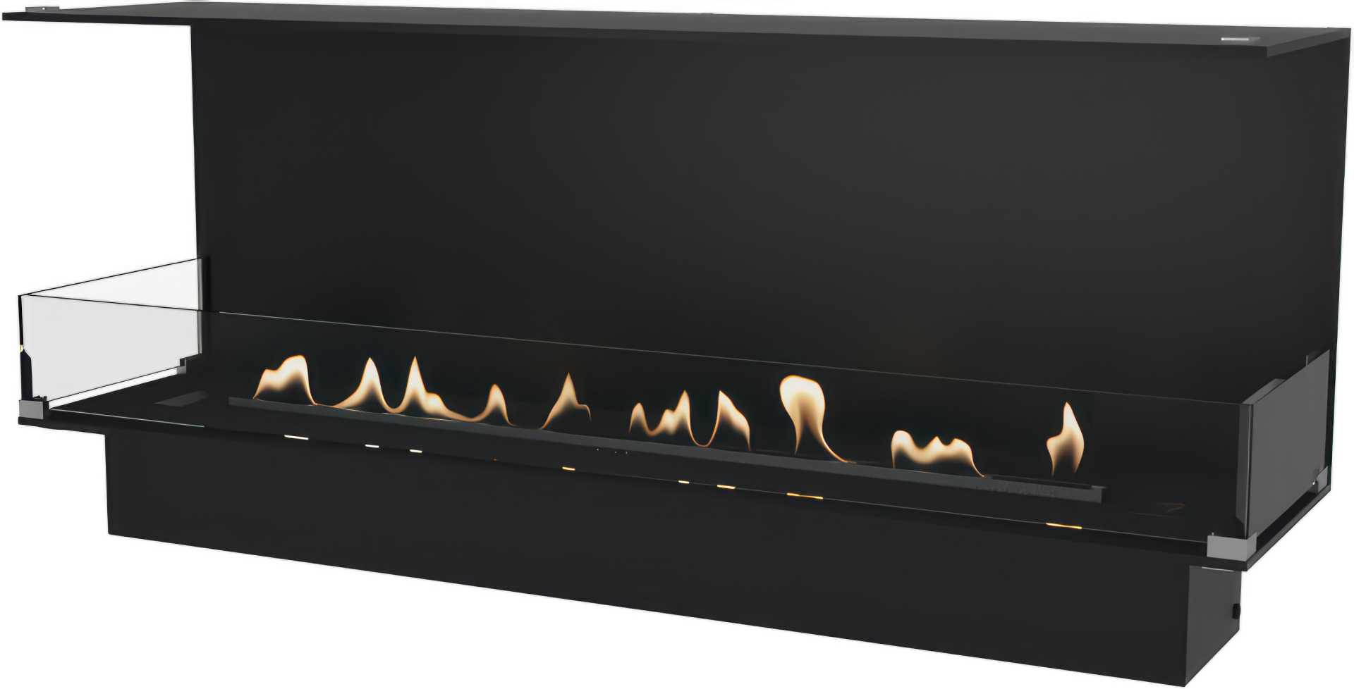 Decoflame - Montreal 1200 biopeisinnsats - panorama med Denver F3 brenner og glass på tre sider
