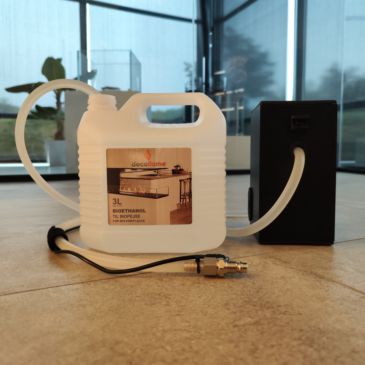 Til fyringen brukes Bioetanol med en renhet på min. 96,5% og maks 96,5%. Vi anbefaler bruk av Decoflame bioethanol som kan kjøpes i varmefagbutikkene.