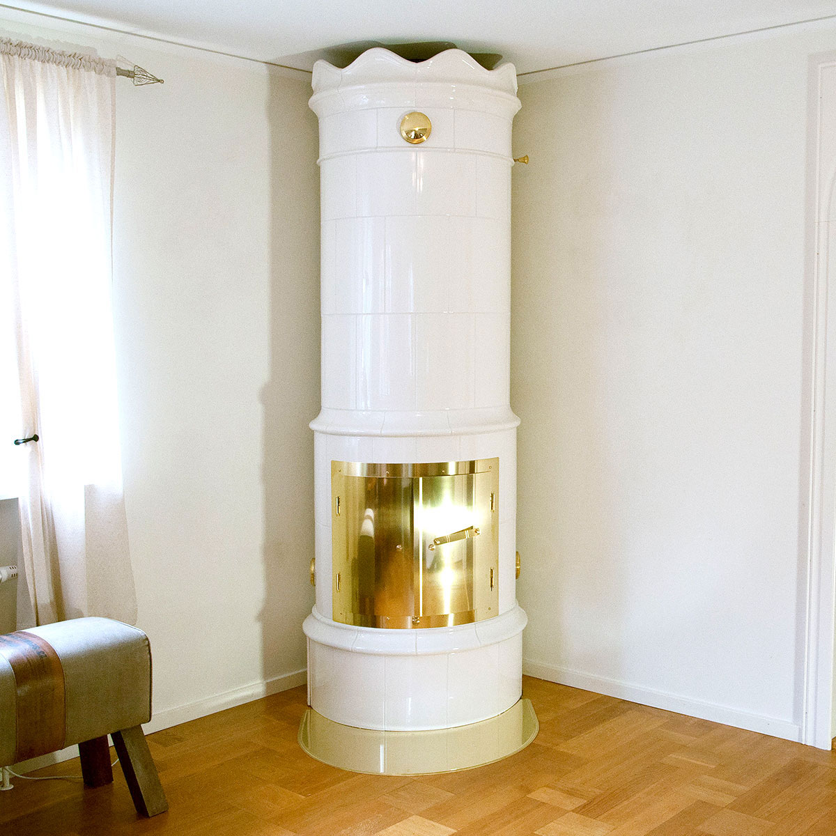 Skandinavian Classik hvit kakkelovn med krone og glassdørMaks varmeeffekt: 7KWEnergiklasse: A+ - Håndlagde Kakler - VarmelagrendeGlassmål i cm:H:45, B:30Fra182 200,- -