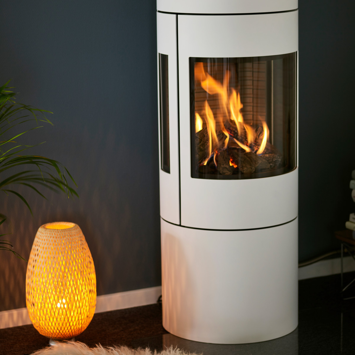 Sirkelformede Viva L Gass bærer virkelig preg av det elegante og minimalistiske: enkelt, glatt og klassisk. Et enormt vindu og stort brennkammer gir deg enda mer glede av ilden – og det blir ikke enklere enn dette: klikk på fjernkontrollen eller telefonen når du vil slå ovnen av eller på. Eller hvis du vil regulere varmen. Altså har du koselig ild – og massevis av varme – på bare noen sekunder. Ovnen kan kobles til med gass på flasker eller rørgass. Den er også godkjent for biogass.