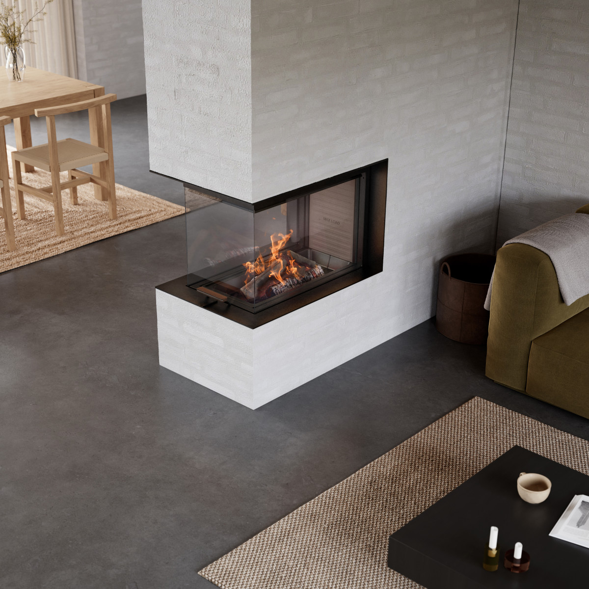 Visio 3:1 Uniq - den ultimate romdeleren uten synlige rammer, som tilbyr et unikt innsyn til flammene fra flere vinkler. Med sitt stilrene og arkitektoniske design bringer den eleganse og varme inn i ethvert moderne hjem, og skaper en perfekt balanse mellom funksjonalitet og estetikk.