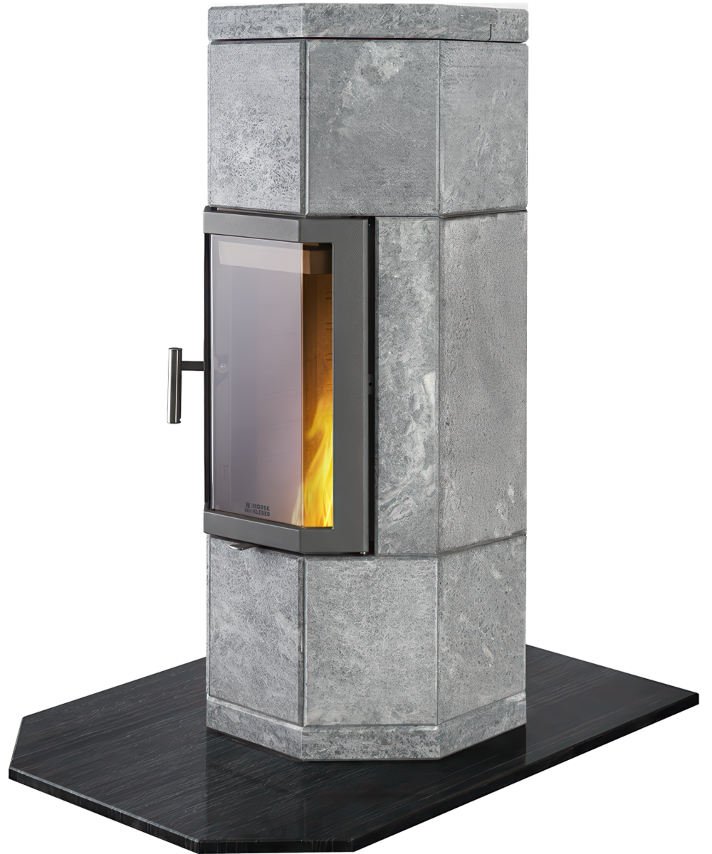 Norsk Kleber - Octo+ 110 grå klebersteinsovn med støpejernsdør