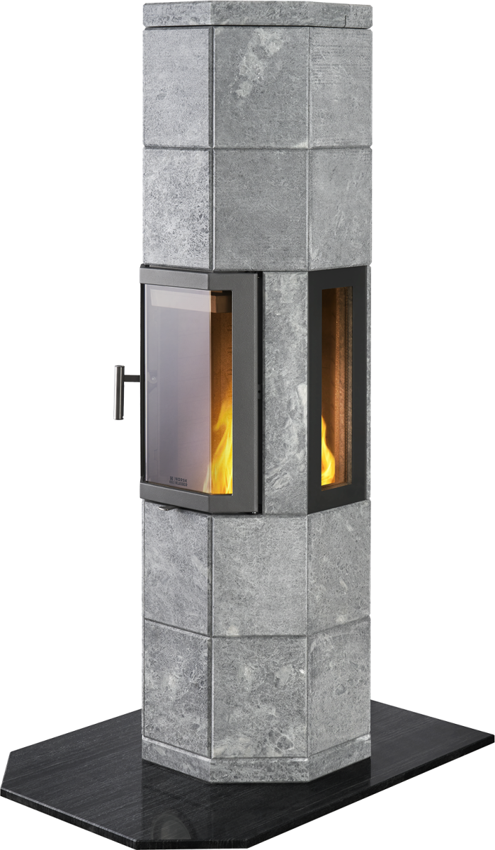 Kube 4 grå klebersteinsovn med sideglass og støpejernsdørMaks varmeeffekt: 11KWEnergiklasse: A+ - Virkningsgrad: 86%Mål i cm: H:147, B:52, D:44Fra63 836,-