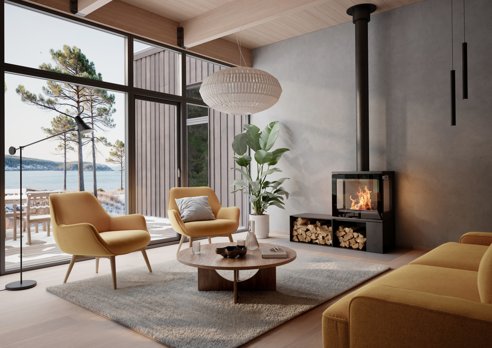 RAIS 600 Art er en stilren vedovn med store glassflater og moderne uttrykk. Med flere fargevalg, ulike håndtak og mulighet for sideglass kan du skreddersy ovnen etter din egen stil – og få et naturlig midtpunkt i hjemmet.