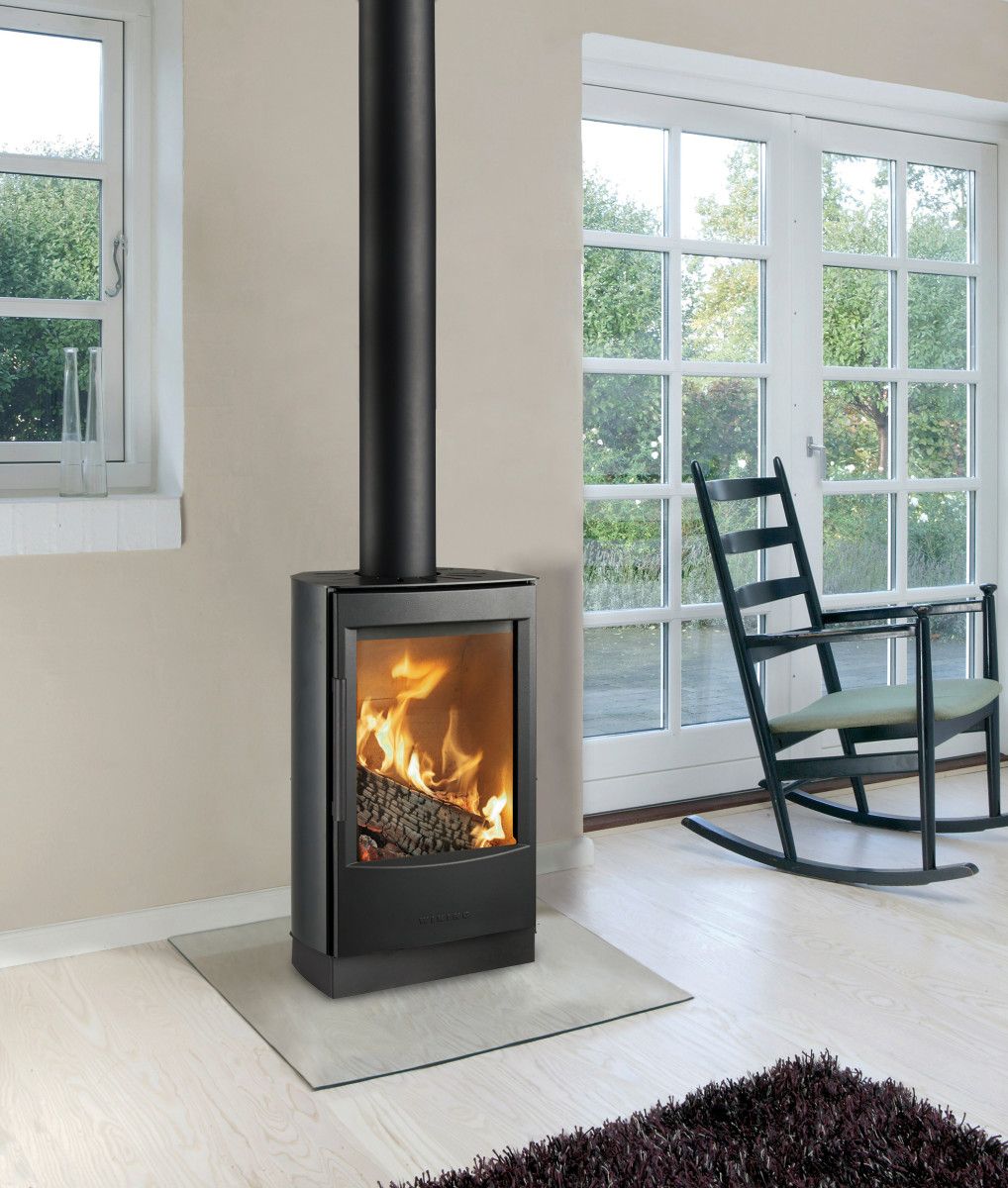 WIKING Miro 2 er en av de minste peisovnene i WIKING Miro-serien. Peisovnen har en stor glassrute og kraftig støpejernsdør. Ovnen kan henges på veggen, plasseres på pidestall eller på gulvet med sokkel.