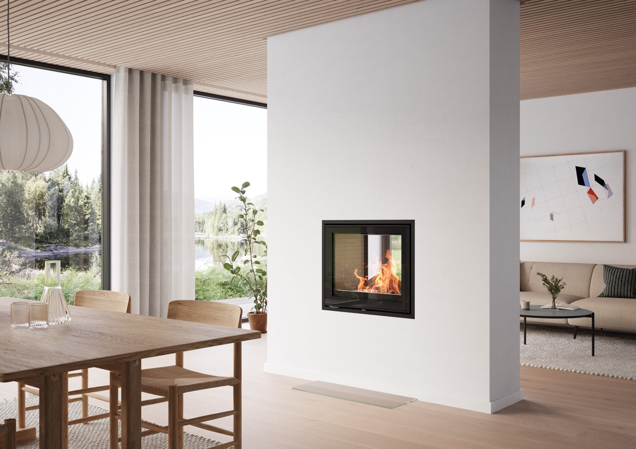 RAIS 600 T er det perfekte midtpunktet i moderne interiørdesign, hvor den skaper en elegant forbindelse mellom to rom og sprer varme og sjarm i hele hjemmet.