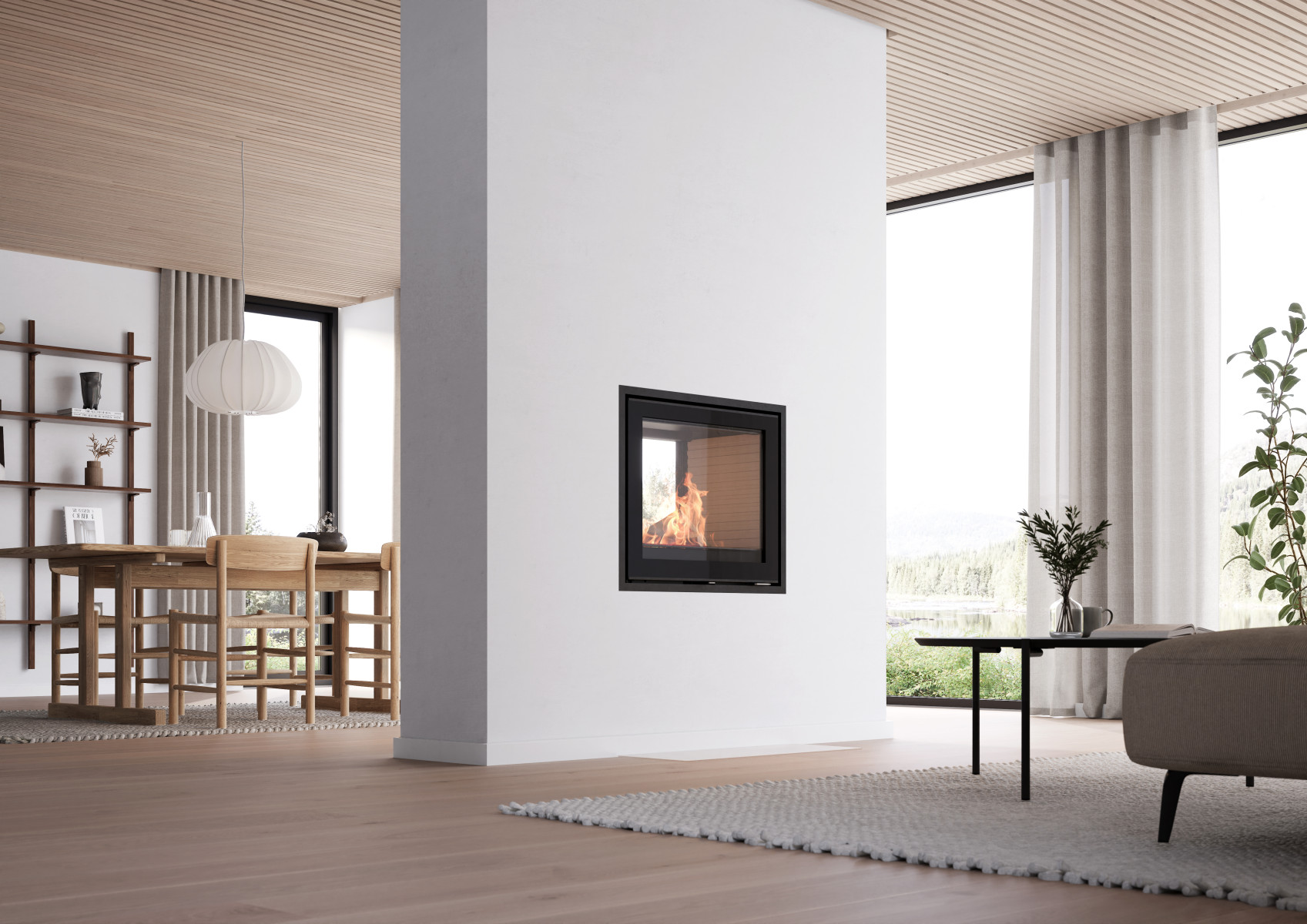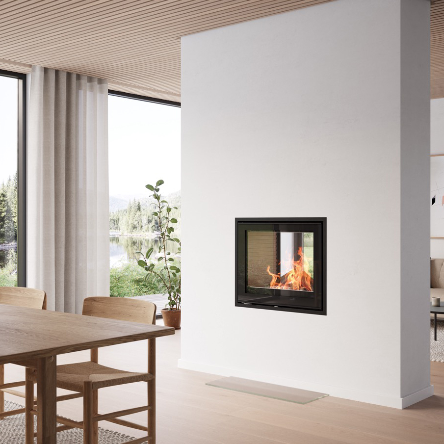 RAIS 600 T er det perfekte midtpunktet i moderne interiørdesign, hvor den skaper en elegant forbindelse mellom to rom og sprer varme og sjarm i hele hjemmet.
