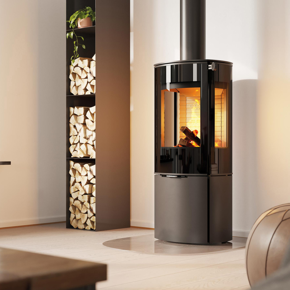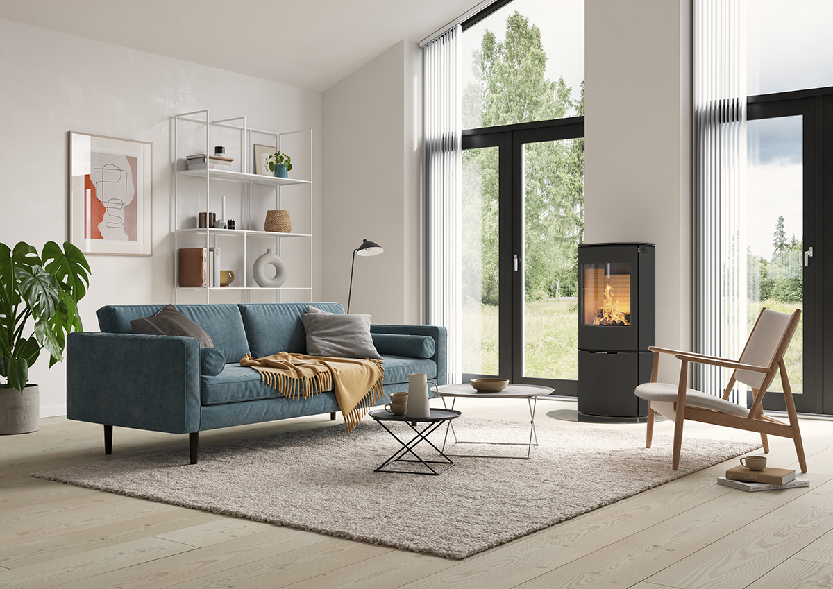 Den store glassdøren skaper et vakkert flammebilde og lar ilden og velværet fylle rommet. Velg RAIS Caro 110 med sideglass for å få optimal glede av de dansende flammene – i hvert hjørne av rommet.