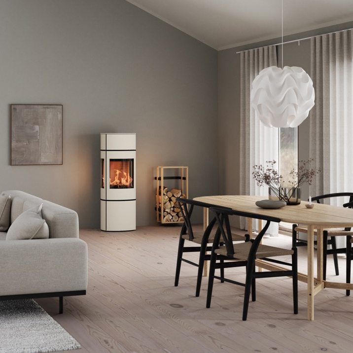 Det strømlinjeformede ovale designet tar opp minimalt med gulvplass samtidig som det gir maksimal synlighet til flammene.