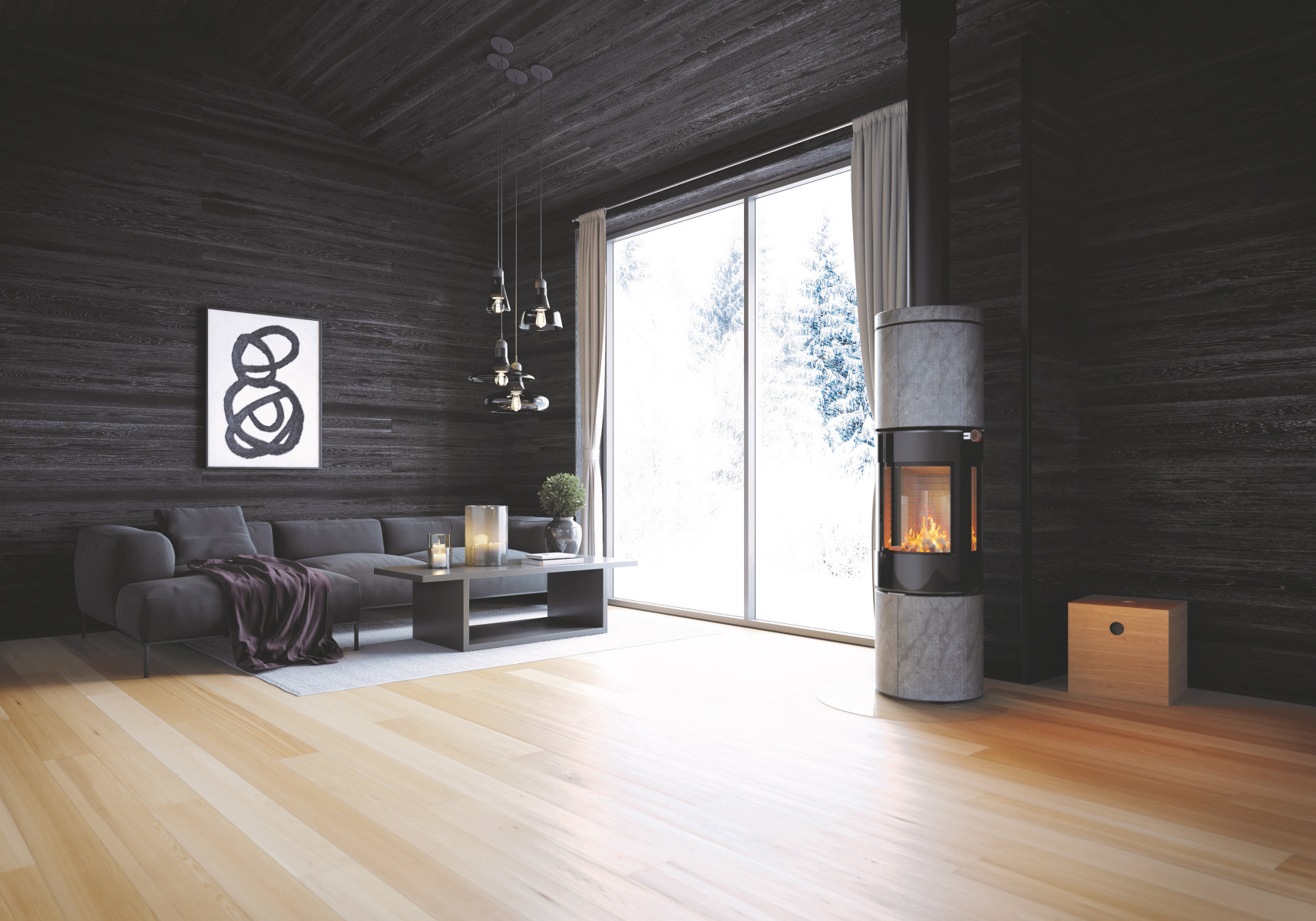 Elegant, sirkelrund peisovn med kleberstein i rent og moderne design. Juno L er en toppmoderne og skulpturell peisovn, hvor de lekkert avrundede, lyse natursteinene danner en flott kontrast til ilden og det blanke glasset og stålet. Det store glassvinduet gir deg et godt innblikk til ilden, hvor flammene virkelig er i fokus.