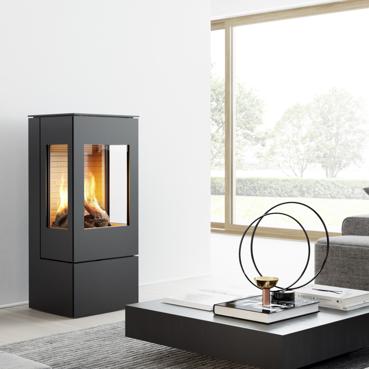 Nexo Gass er en kombinasjon av minimalisme og rene linjer med et stort og godt innblikk til ilden. Denne frittstående gasspeisen har et rolig og fint flammebilde som du kan skru opp og ned med fjernkontrollen.