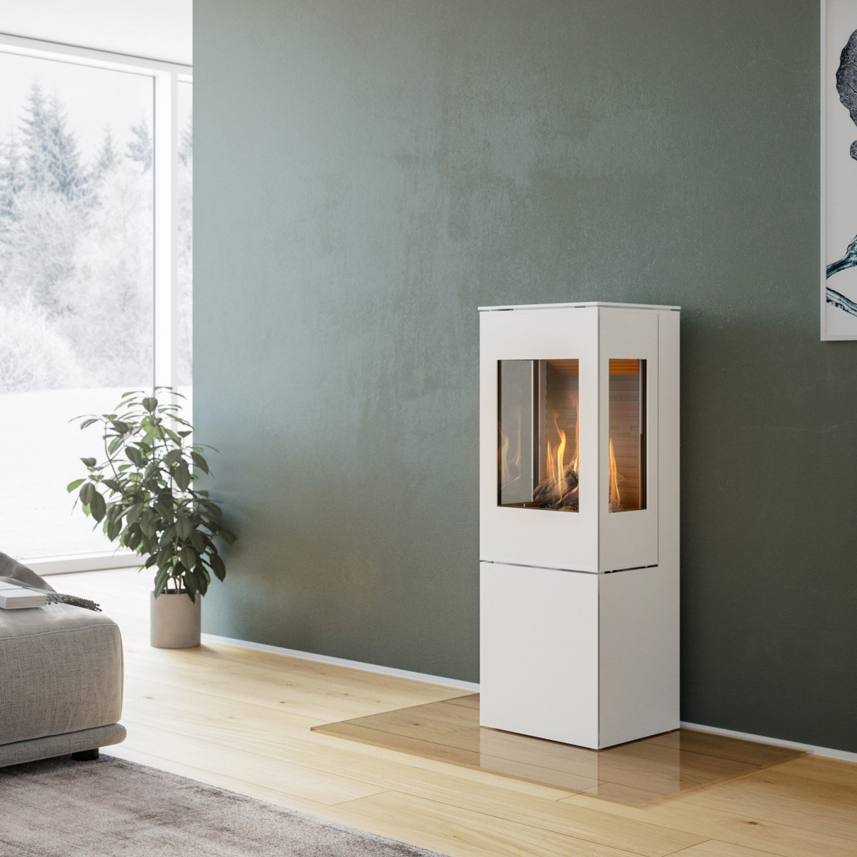Velg farge, sideglass, topplate og høyde – Nexo Gas kommer nemlig i fem forskjellige høyder fra 100 til 185 cm. Gasspeisen tilsluttes flaskegass, naturgass eller statsgass.