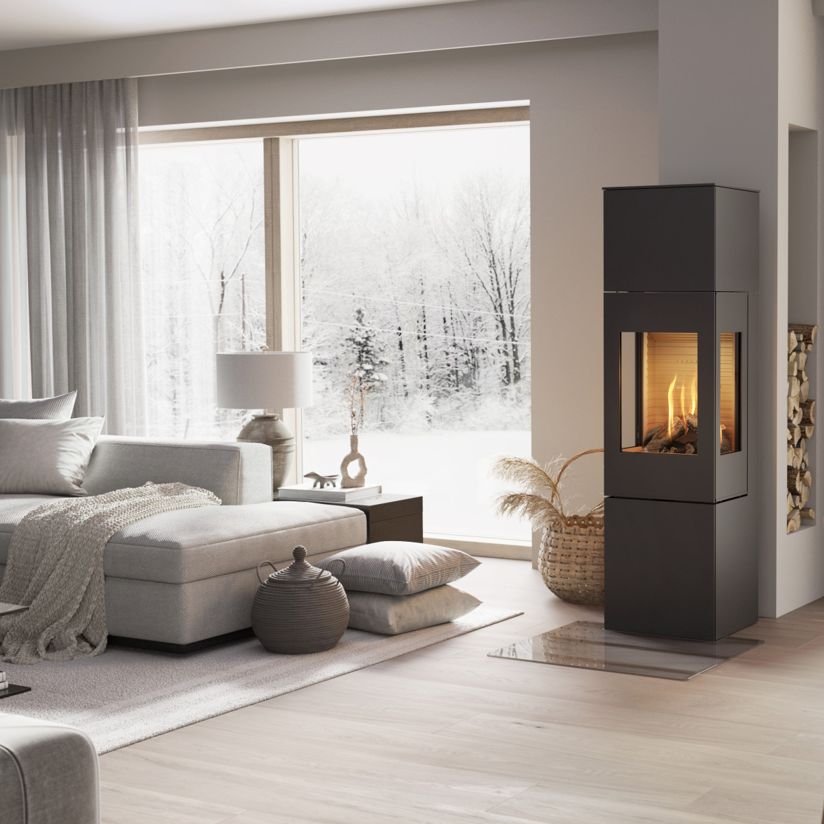 Nexo Gass er en kombinasjon av minimalisme og rene linjer med et stort og godt innblikk til ilden. Denne frittstående gasspeisen har et rolig og fint flammebilde som du kan skru opp og ned med fjernkontrollen.