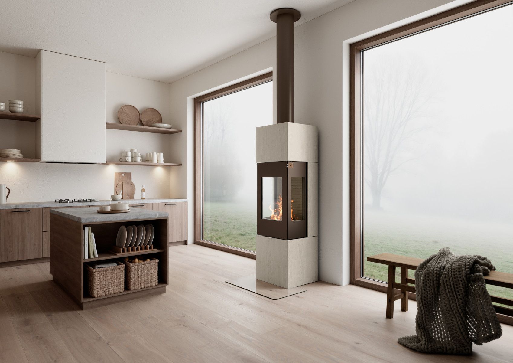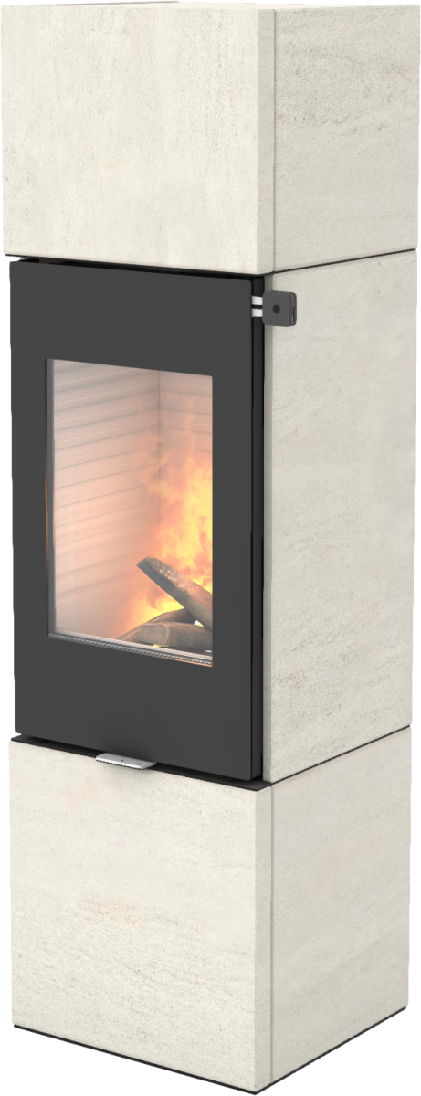 Nexo Stone kan leveres i flere høyder, farger og utførelser. Du kan velge mellom ulike overflater, håndtak og detaljer for å skreddersy uttrykket til ditt hjem. Brennkammeret er konstruert for optimal forbrenning med lavt utslipp og høy varmeeffekt, slik at du får maksimal varme fra hver vedkubbe. Den store glassdøren rammer inn flammen på en måte som skaper en levende ro i rommet – en følelse av både luksus og trygghet.