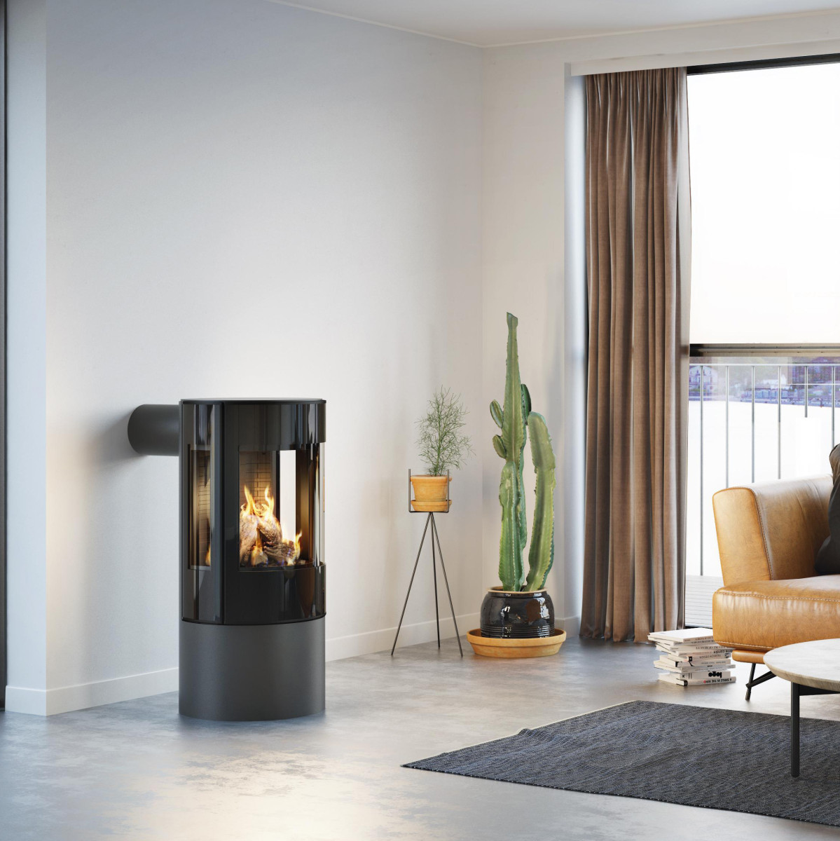 Sirkelformede Viva L Gass bærer virkelig preg av det elegante og minimalistiske: enkelt, glatt og klassisk. Et enormt vindu og stort brennkammer gir deg enda mer glede av ilden – og det blir ikke enklere enn dette: klikk på fjernkontrollen eller telefonen når du vil slå ovnen av eller på. Eller hvis du vil regulere varmen. Altså har du koselig ild – og massevis av varme – på bare noen sekunder. Ovnen kan kobles til med gass på flasker eller rørgass. Den er også godkjent for biogass.