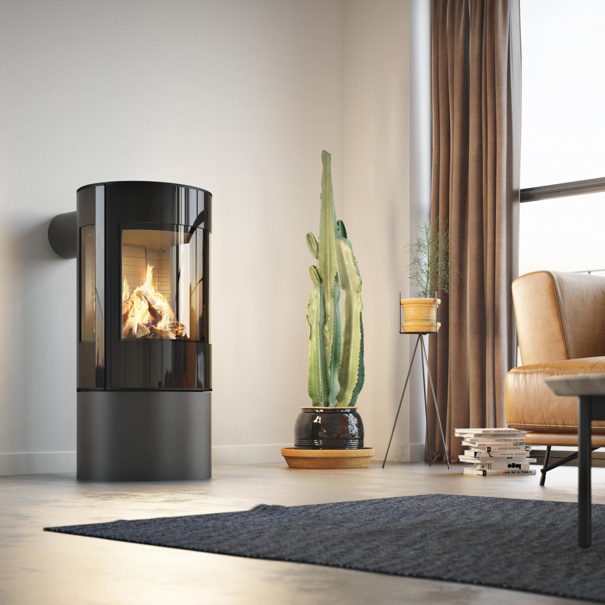 Sirkelformede Viva L Gass bærer virkelig preg av det elegante og minimalistiske: enkelt, glatt og klassisk. Et enormt vindu og stort brennkammer gir deg enda mer glede av ilden – og det blir ikke enklere enn dette: klikk på fjernkontrollen eller telefonen når du vil slå ovnen av eller på. Eller hvis du vil regulere varmen. Altså har du koselig ild – og massevis av varme – på bare noen sekunder. Ovnen kan kobles til med gass på flasker eller rørgass. Den er også godkjent for biogass.