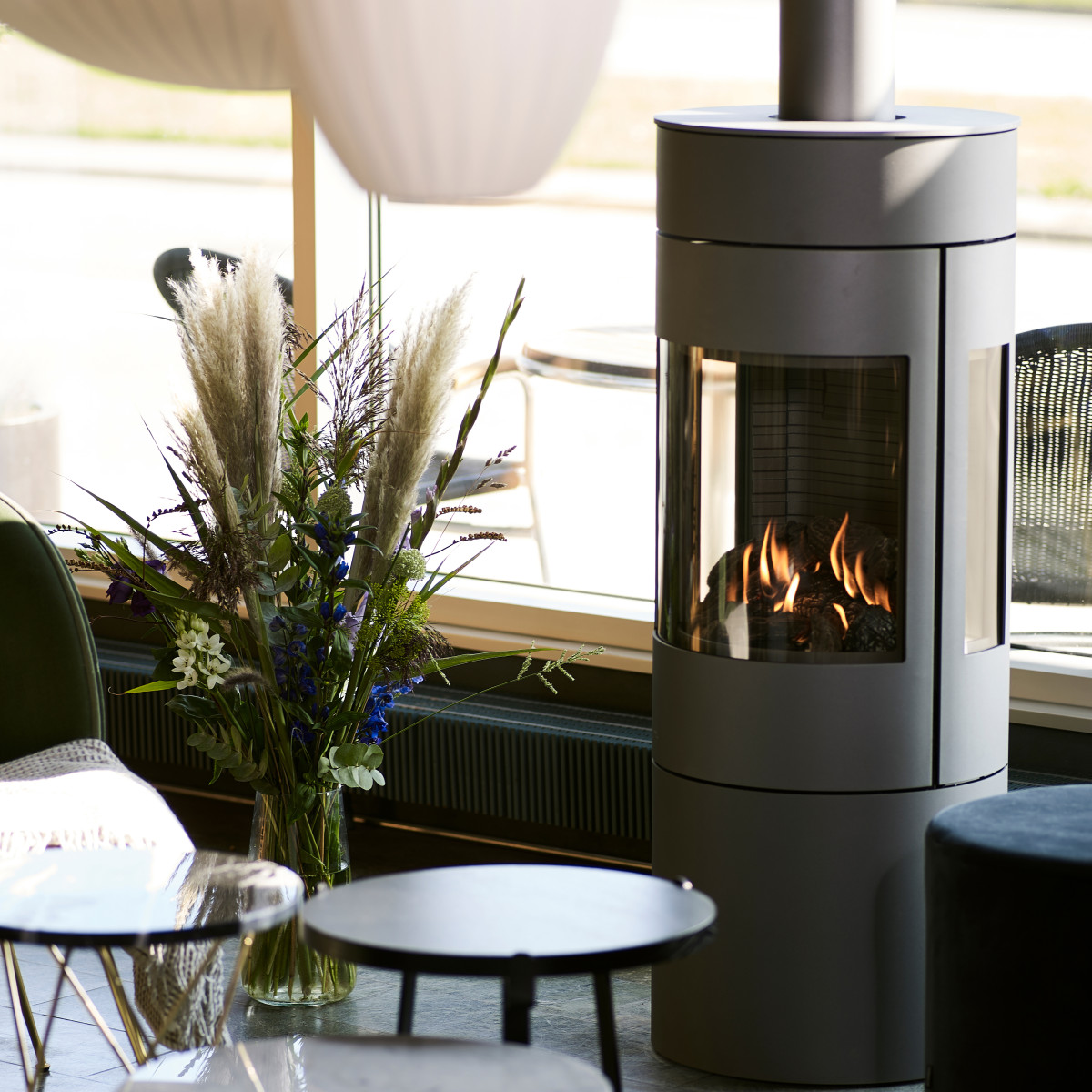 Sirkelformede Viva L Gass bærer virkelig preg av det elegante og minimalistiske: enkelt, glatt og klassisk. Et enormt vindu og stort brennkammer gir deg enda mer glede av ilden – og det blir ikke enklere enn dette: klikk på fjernkontrollen eller telefonen når du vil slå ovnen av eller på. Eller hvis du vil regulere varmen. Altså har du koselig ild – og massevis av varme – på bare noen sekunder. Ovnen kan kobles til med gass på flasker eller rørgass. Den er også godkjent for biogass.