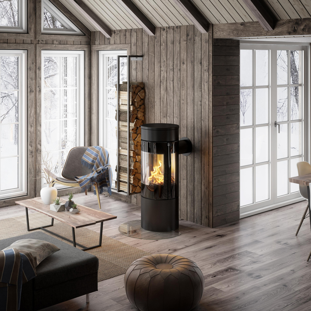 Vedstabler i svart - sett med toMinimalistisk designEn stor og en litenMål i cm. HxBxD: 70x60x40Fra1 399,-
