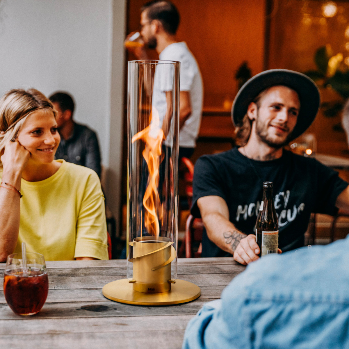 SPIN - en magisk flammevirvel. Finnes det noe koseligere enn å samles med venner og familie rundt levende bål på terrassen, balkongen, i hagen eller innendørs? Med ild blir alt enda vakrere, koseligere og mer hjertevarmende. SPIN bringer hygge og en fengslende magi til deg og dine kjære med sitt unike flammespill. Nyt varmen fra flammevirvelen og bli trollbundet av den 500 % forstørrede flammen som skapes ved hjelp av flammerotasjon og konveksjonskraft.