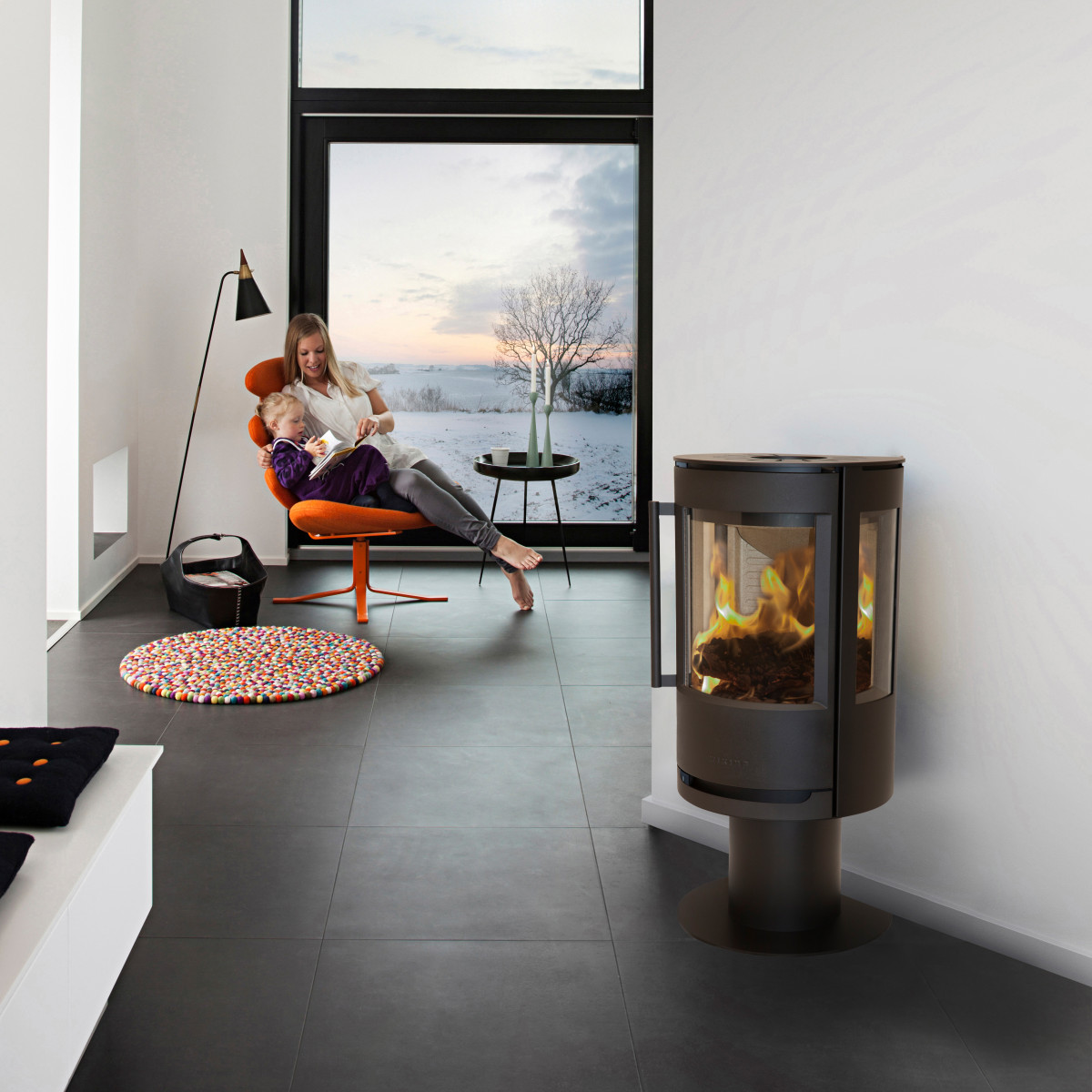 WIKING Luma 1 peisovn med pidestall har optimal varmeutnyttelse til stor glede for forbruker og miljøet. Peisovnen har en stor glassrute og brede sideglass slik at ilden kan nytes fra flere sider. WIKING Luma 1 har et enkelt og tidløst design og passer perfekt til hytter eller i mindre stuer.