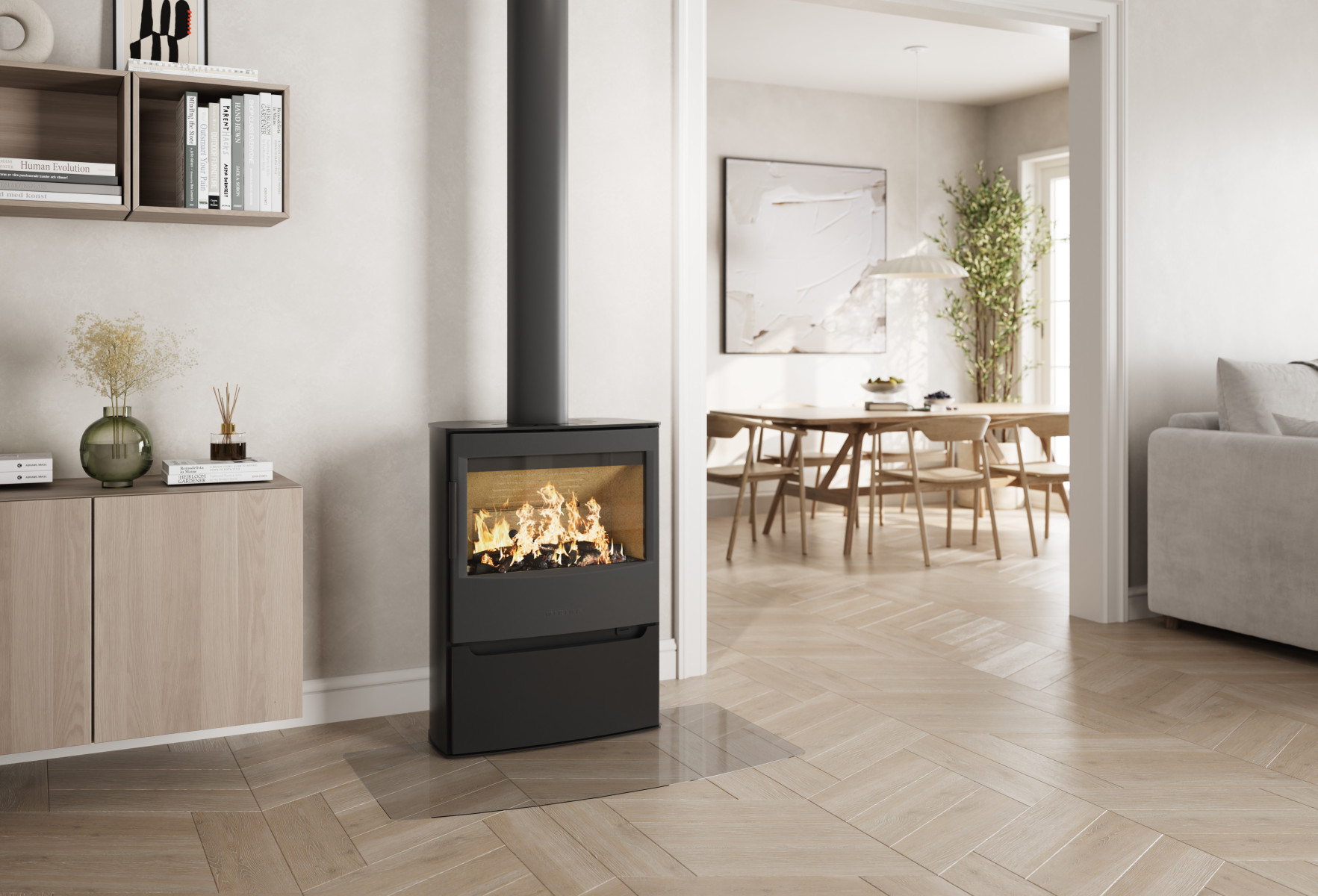 Maxi-serien er det nyeste tilskuddet i Wiking-familien. Det store glasset i døren gir maks innsyn til flammene som får fult fokus rammet inn av det rene designet.